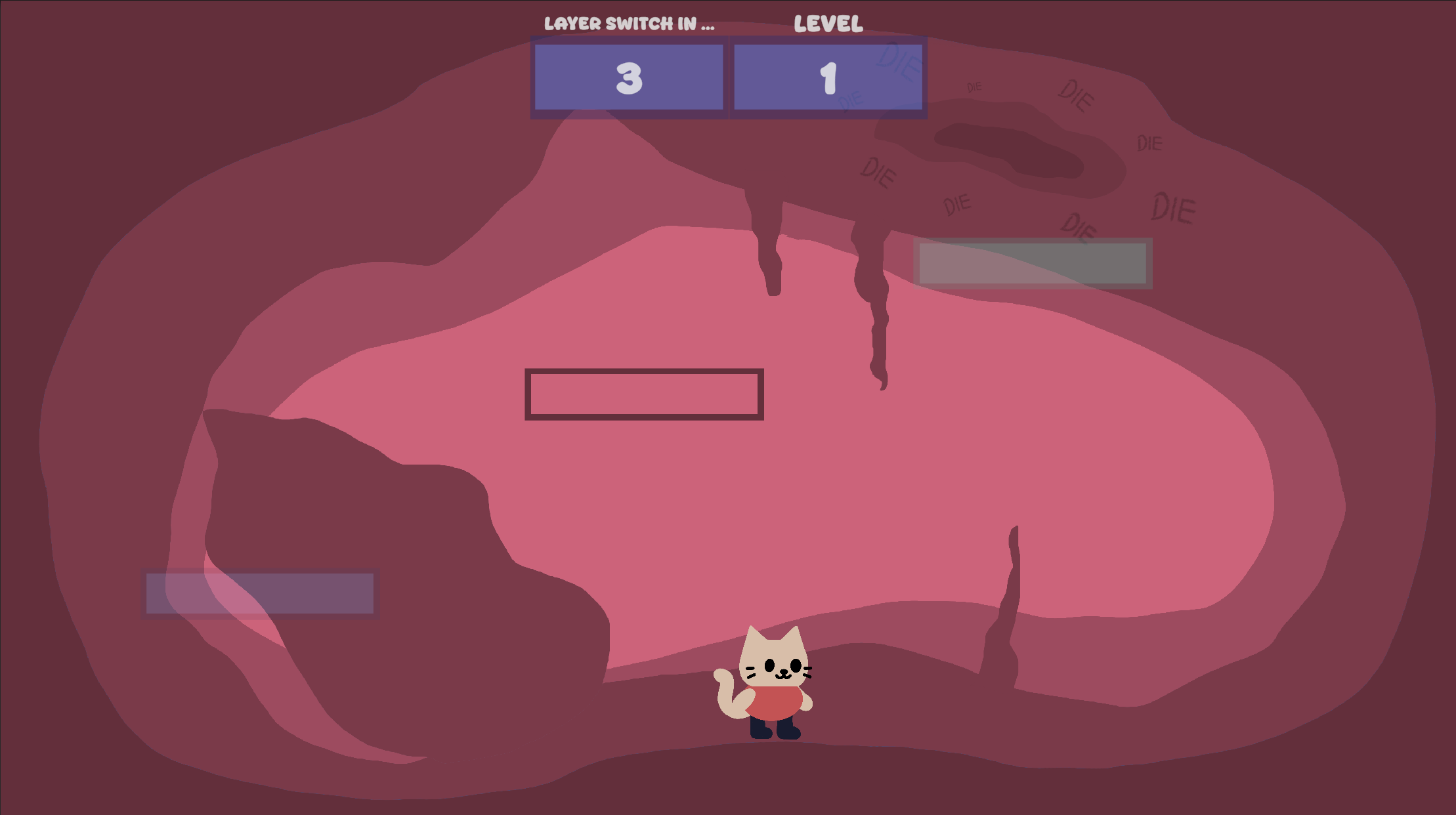 This is a basic platformer game, but with the twist, that some of the platforms are not always available for use. Instead, to fullfil the theme "Loop", they cycle with a timer and become available in their cycle time. After their cycle is done, these platforms become unavailable again and the player will simply fall through them. These cycles repeat over and over again, making them, after a couple of cycles, available again. So the cycles loop through.